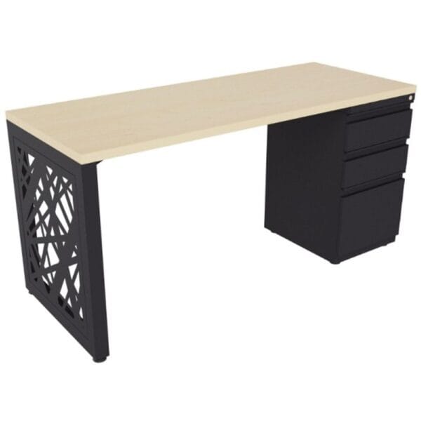 Este escritorio cuenta con una superficie amplia, elaborada en MDF enchapado en melamínico, lo que garantiza durabilidad y facilidad de limpieza. Además, incorpora un pasacables que mantiene tu área de trabajo organizada y libre de desorden.