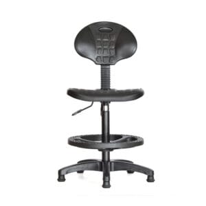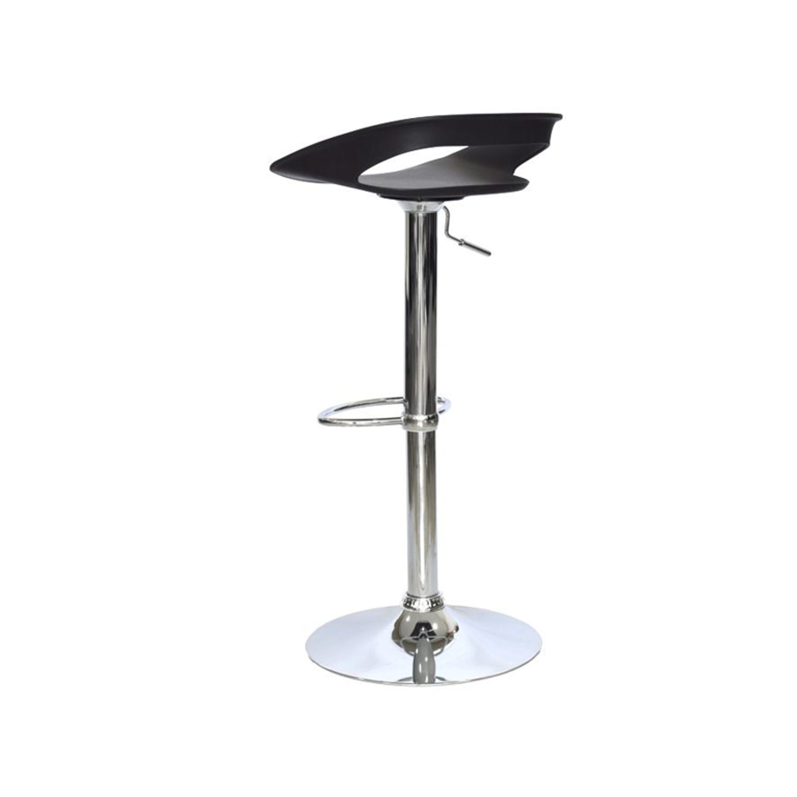 Estructura en tubo cromado, ajustable en altura mediante una palanca de metal convenientemente ubicada en el asiento, ofreciendo flexibilidad y comodidad.