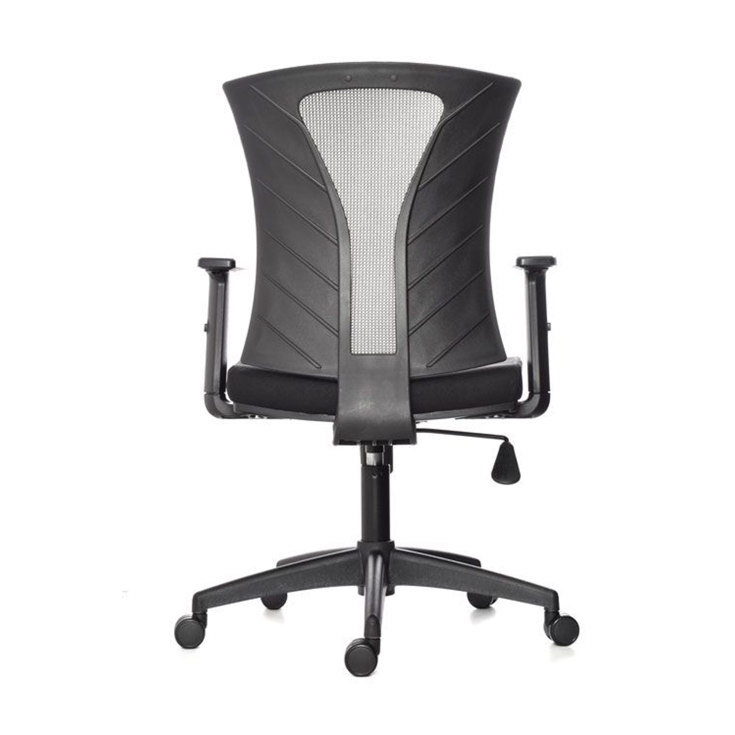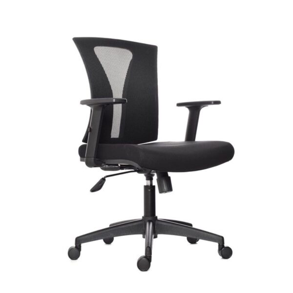 Estructura en polipropileno inyectado de alto impacto en color negro, con prense de tela microperforada tipo malla.