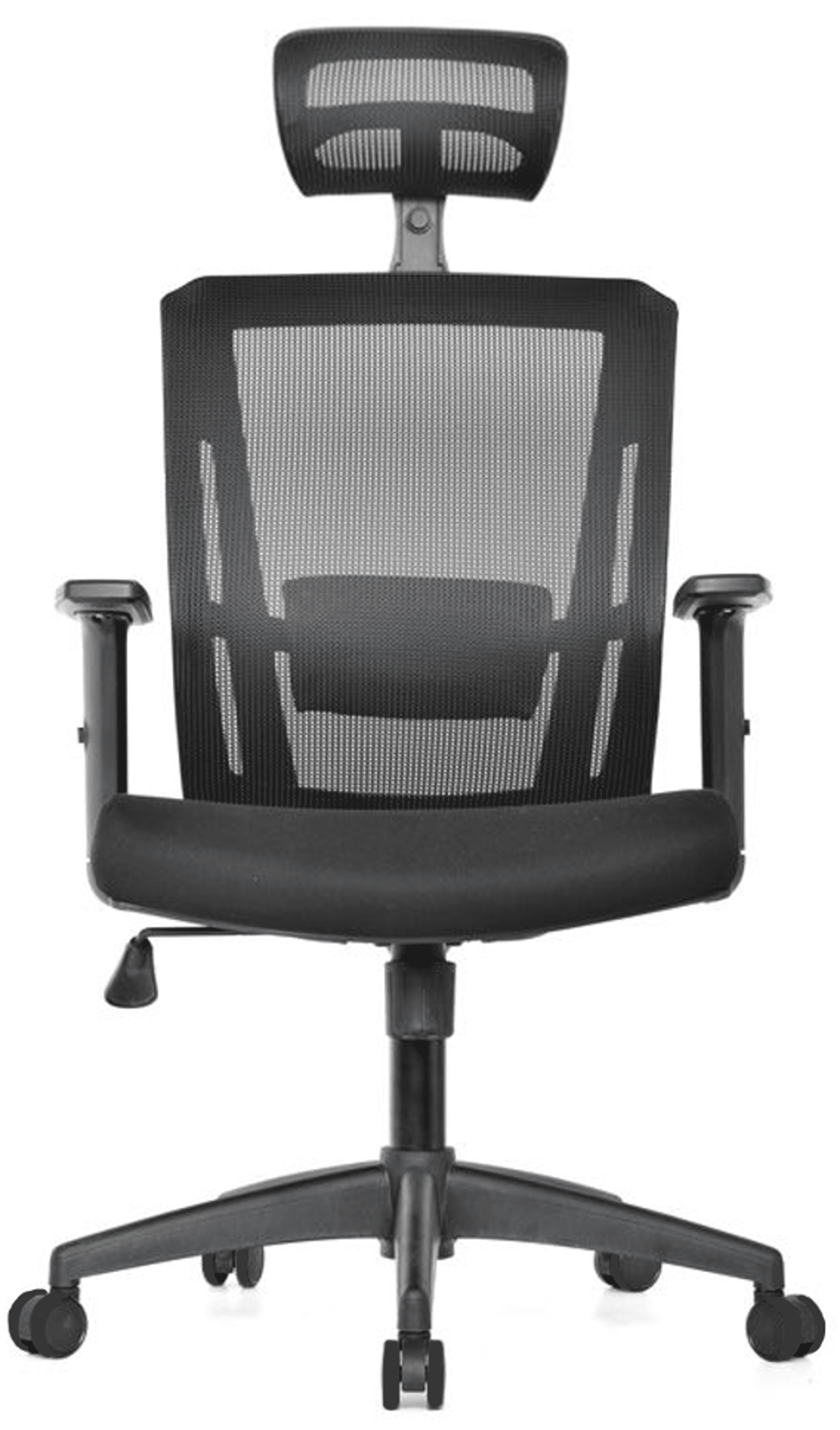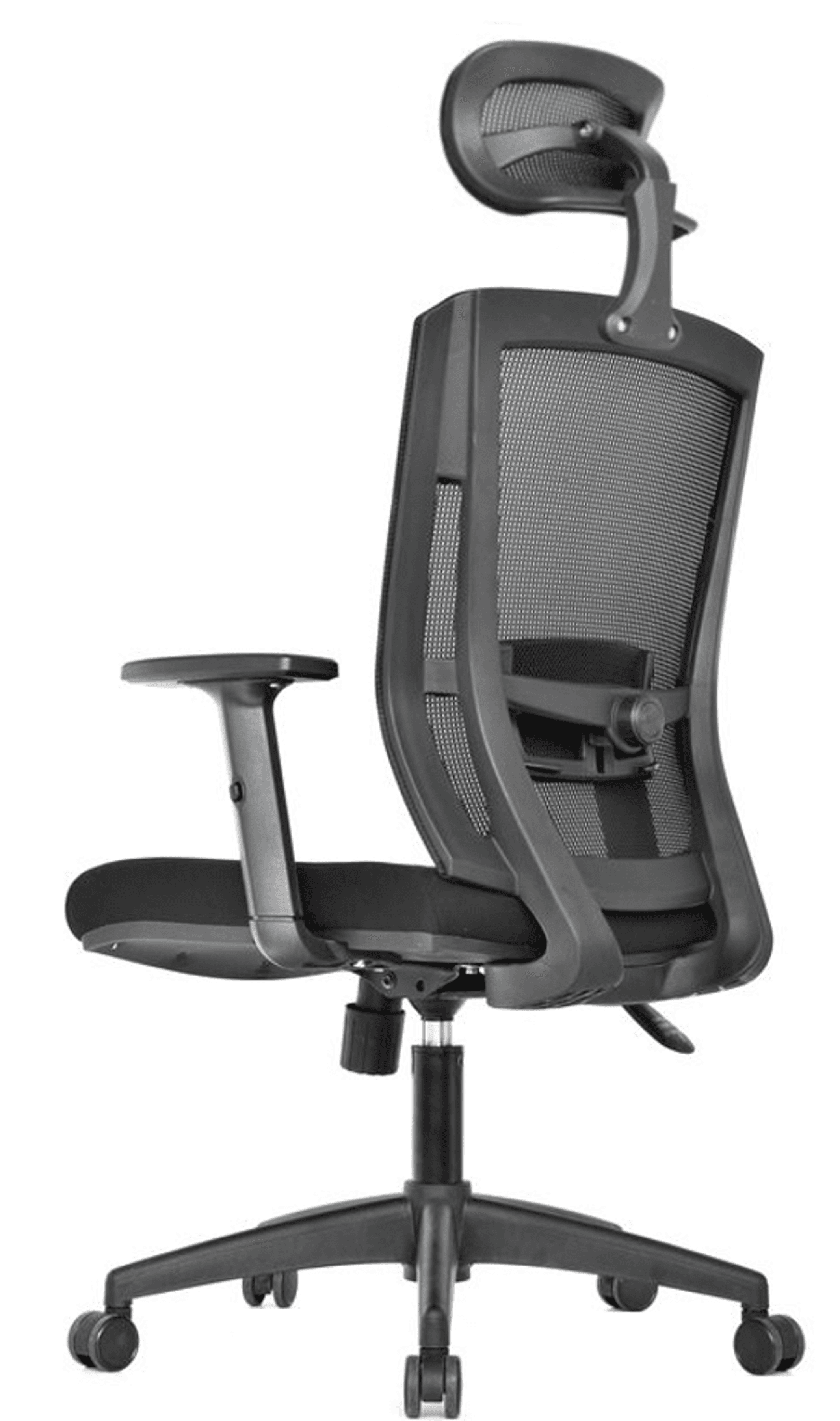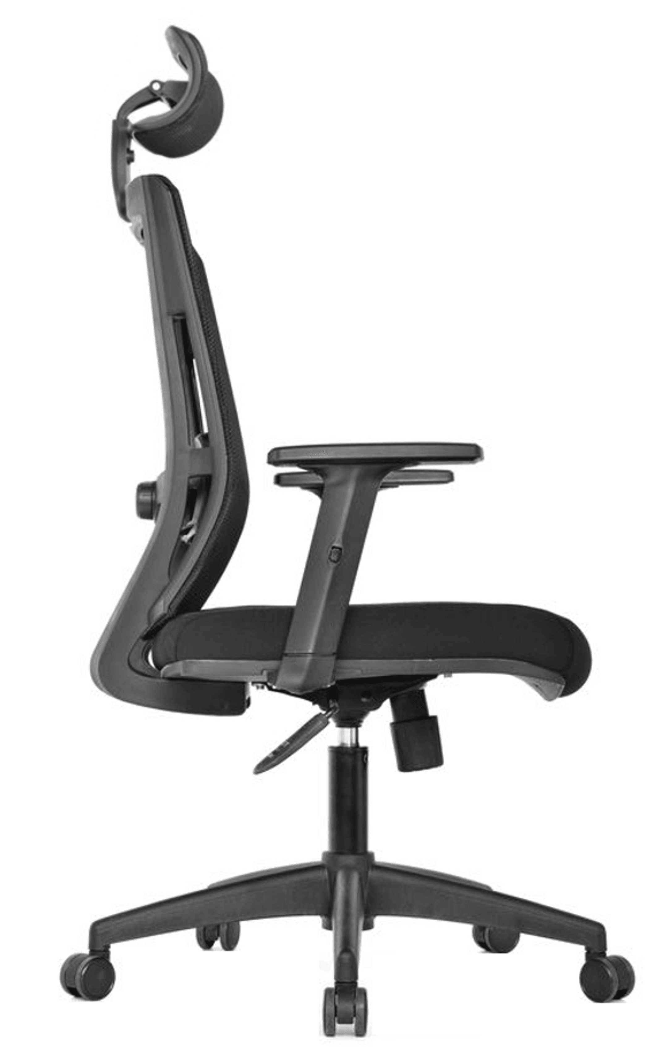Cabecero en tela microperforada tipo malla material poliéster, ajustable en altura y angulo.