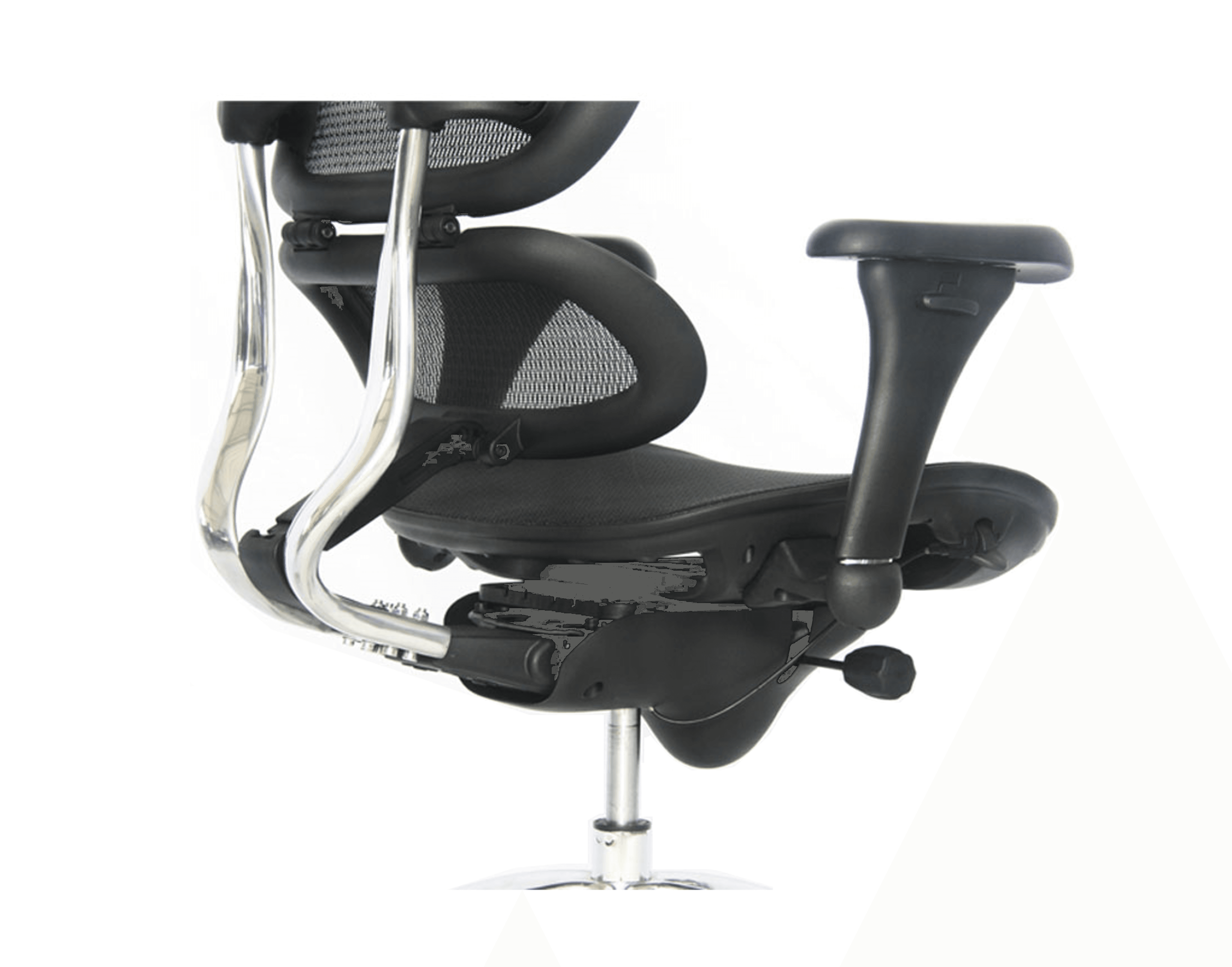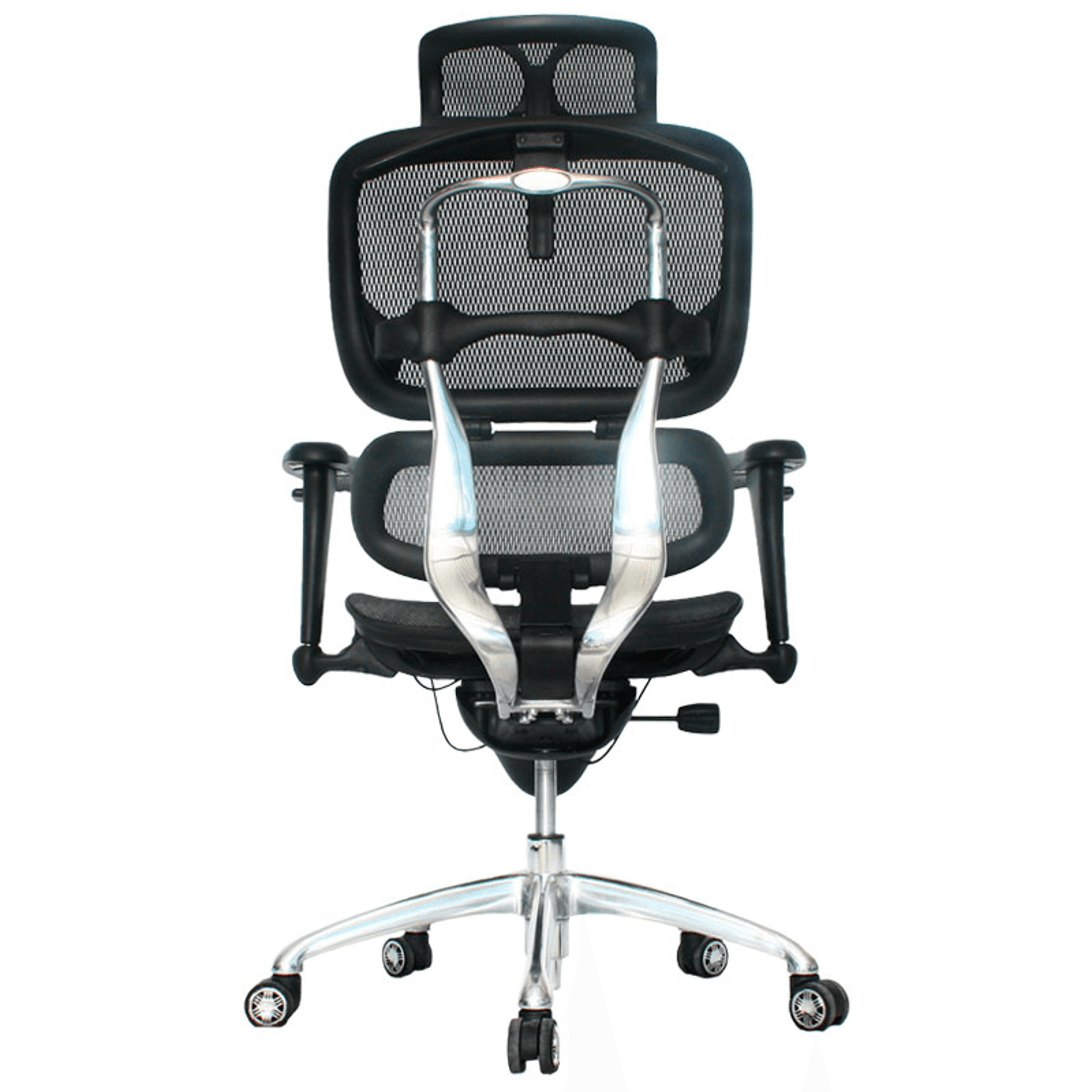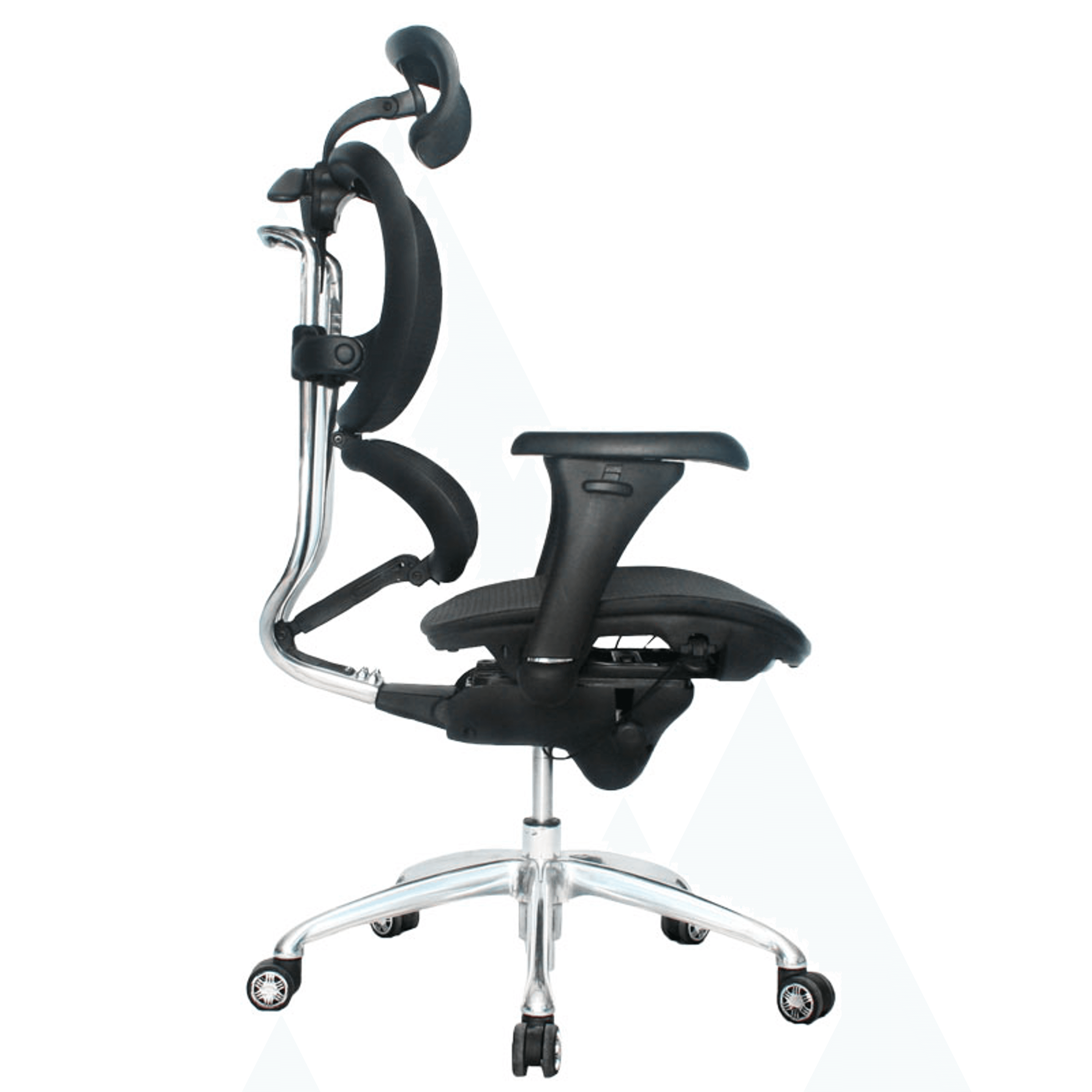 Silla presidente ergohuman, comoda para trabajo de oficina. modelo que cumple con los parametros de ergonomia (IEA), caracteristicas: tapizada en nylon, mecanismo syncro-slider, brazos ajustables 2D, cabecero ajustable, espaldar ajustable, rodachinas en nylon de 65mm.