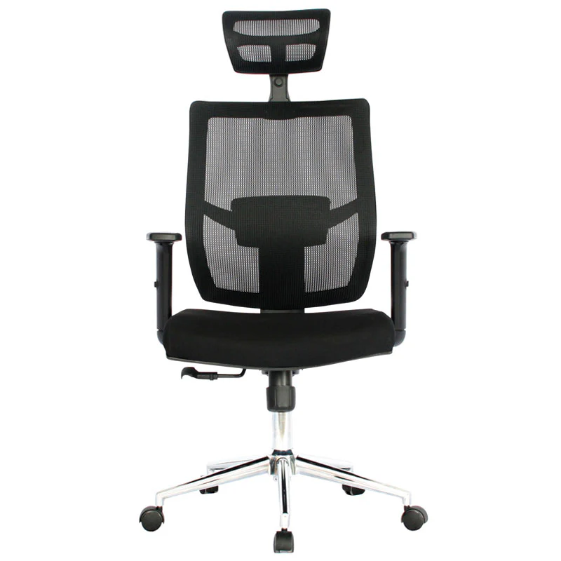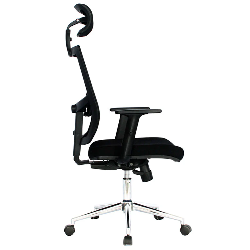 Estructura en polipropileno inyectado de alto impacto en color negro, con prense de tela microperforada tipo malla.