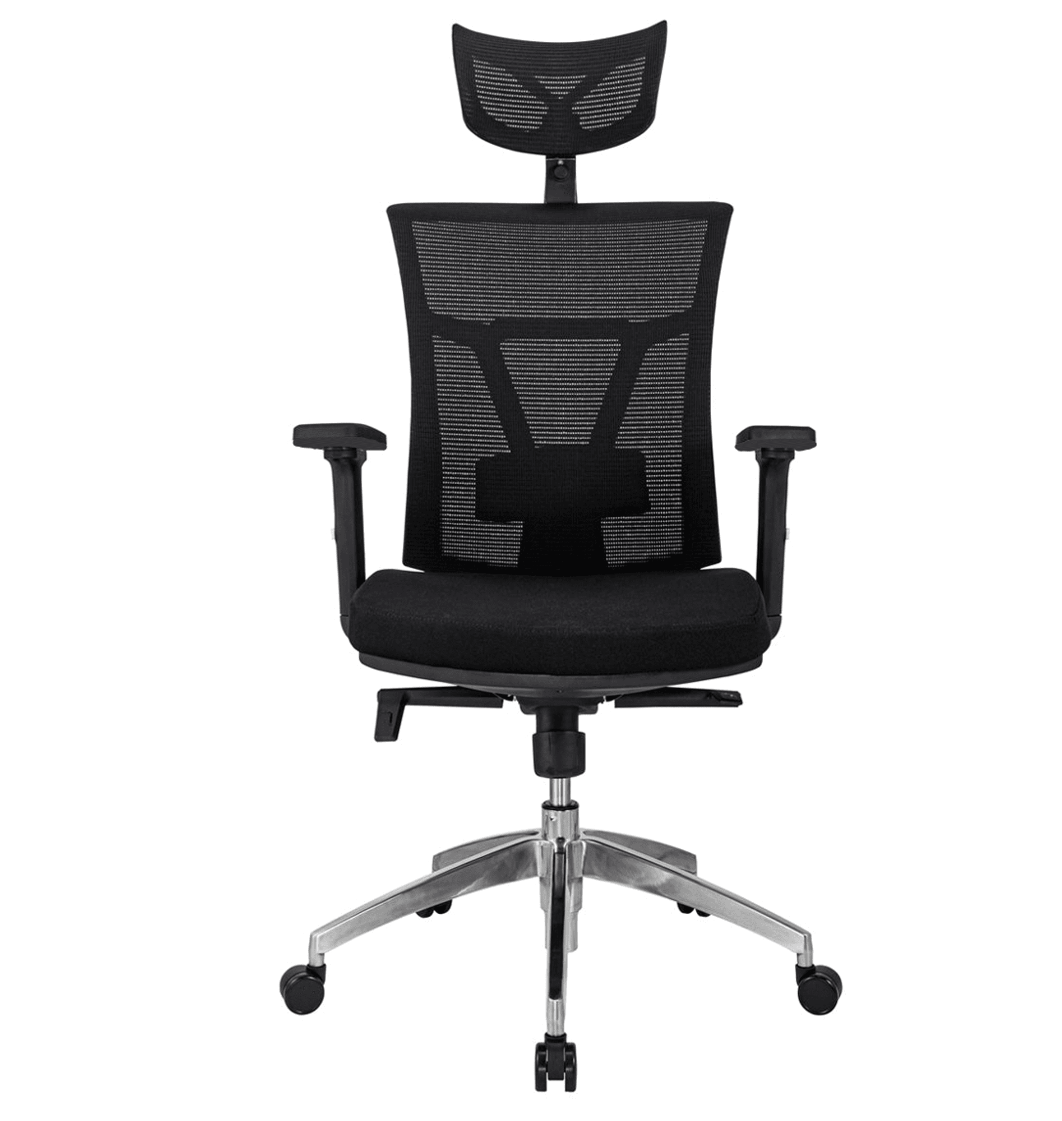 Cabecero en tela microperforada tipo malla material poliéster, ajustable en altura y angulo.