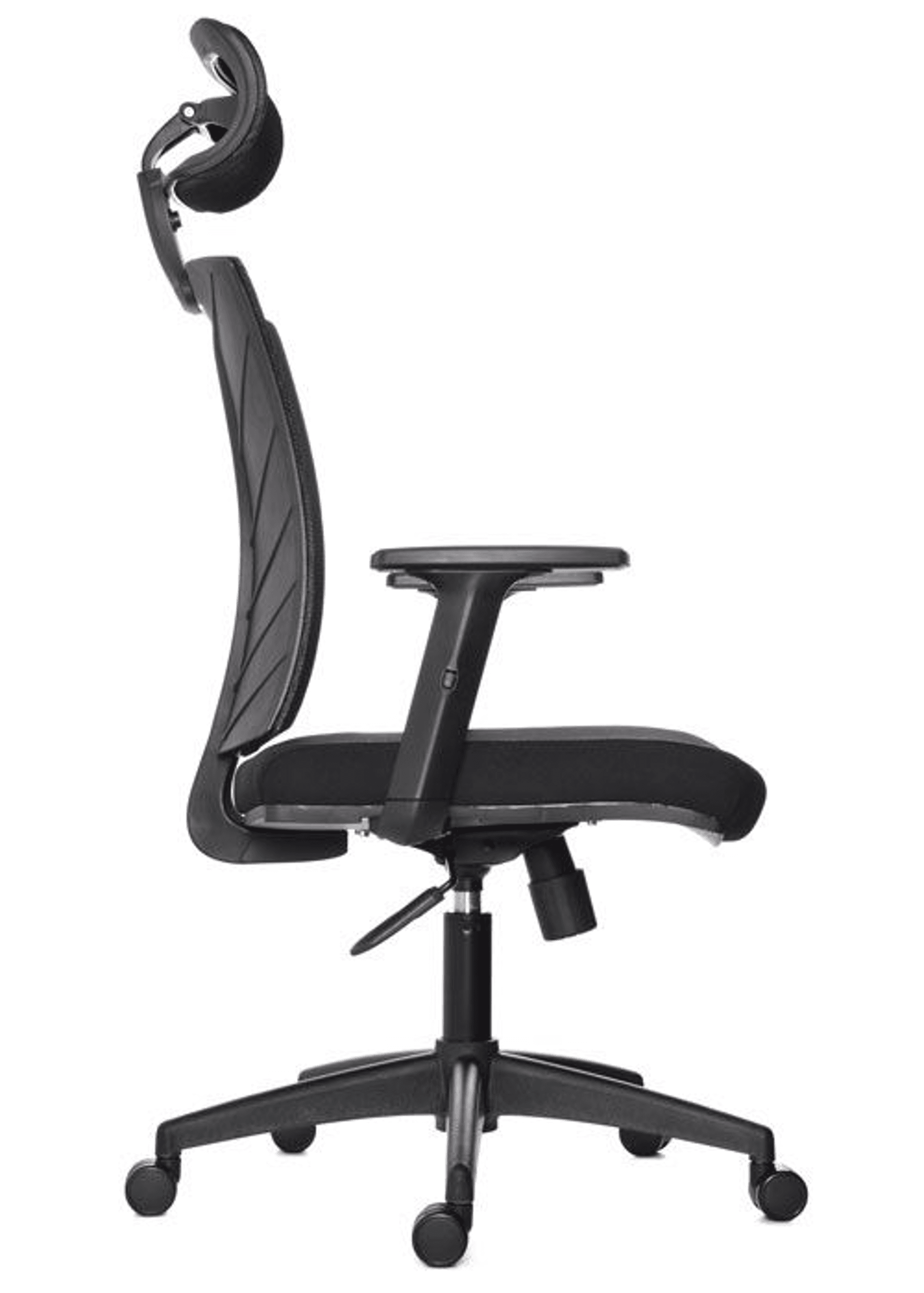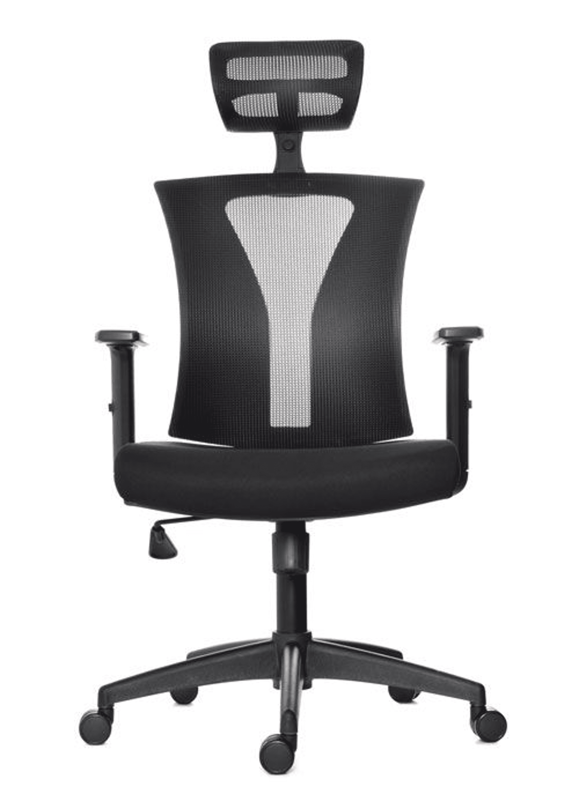 Silla presidente praga, comoda para trabajos breves. Caracteristicas: tapizada en malla y paño negro, mecanismo basculante, brazos ajustables, cabecero ajustable, rodachinas en nylon.