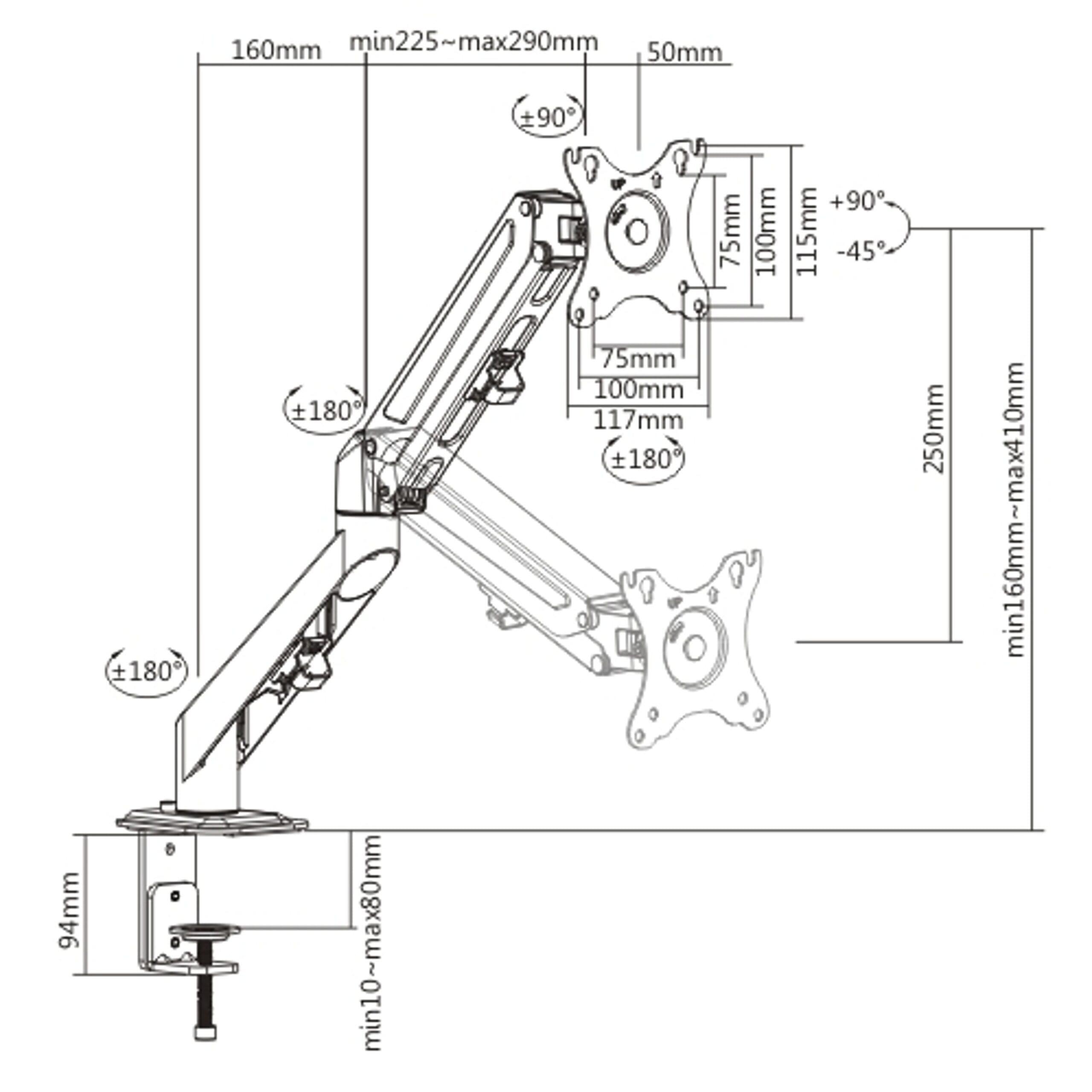 Extension maxima del brazo 40 cm.